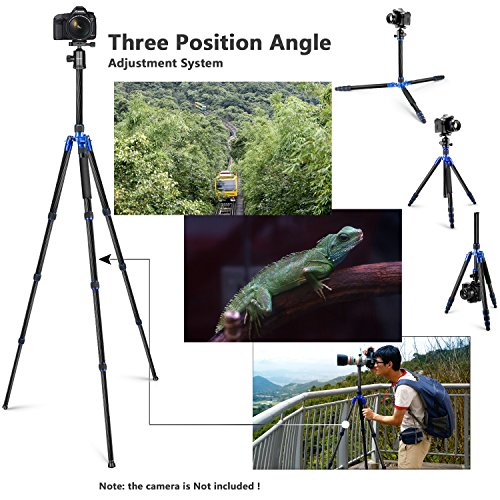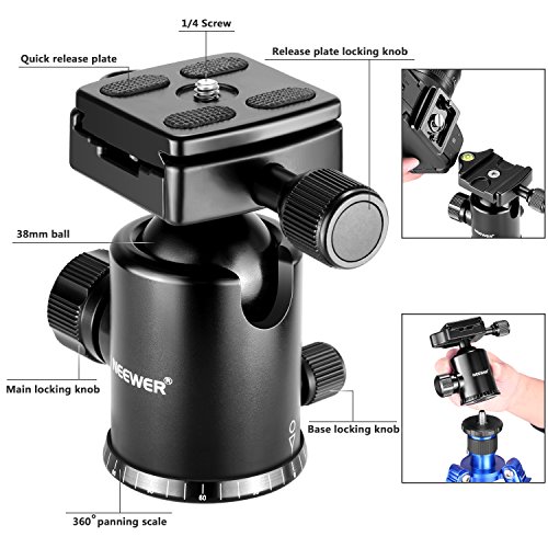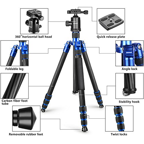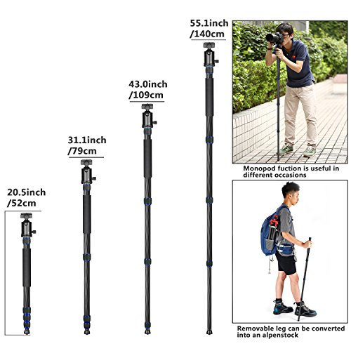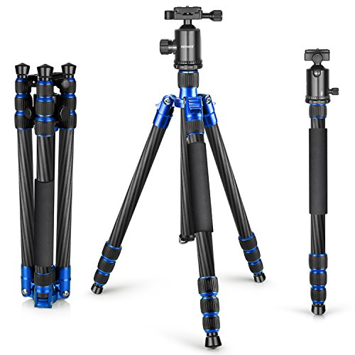 Neewer Carbon Fiber 65 inches/165 centimeters Tripod Monopod with 360 Degree Ball Head,1/4 inch Quick Shoe Plate and Bubble Level for DSLR Camera,Camcorder,Load up to 33 pounds/15 kilograms(Blue)