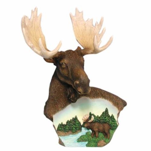 WL 6.75 Inch Moose Head and Bust Painted Woodland Scene Figurine
