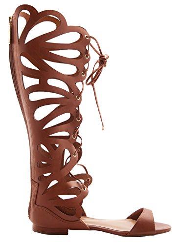 Get the hottest gladiator sandal look this season in these tall vegan cut out gladiator sandals! Their Roman influenced style gets a flirty twist thanks to their looped, butterfly cut out design! With a lace up front and zippered back, and a flat heel.