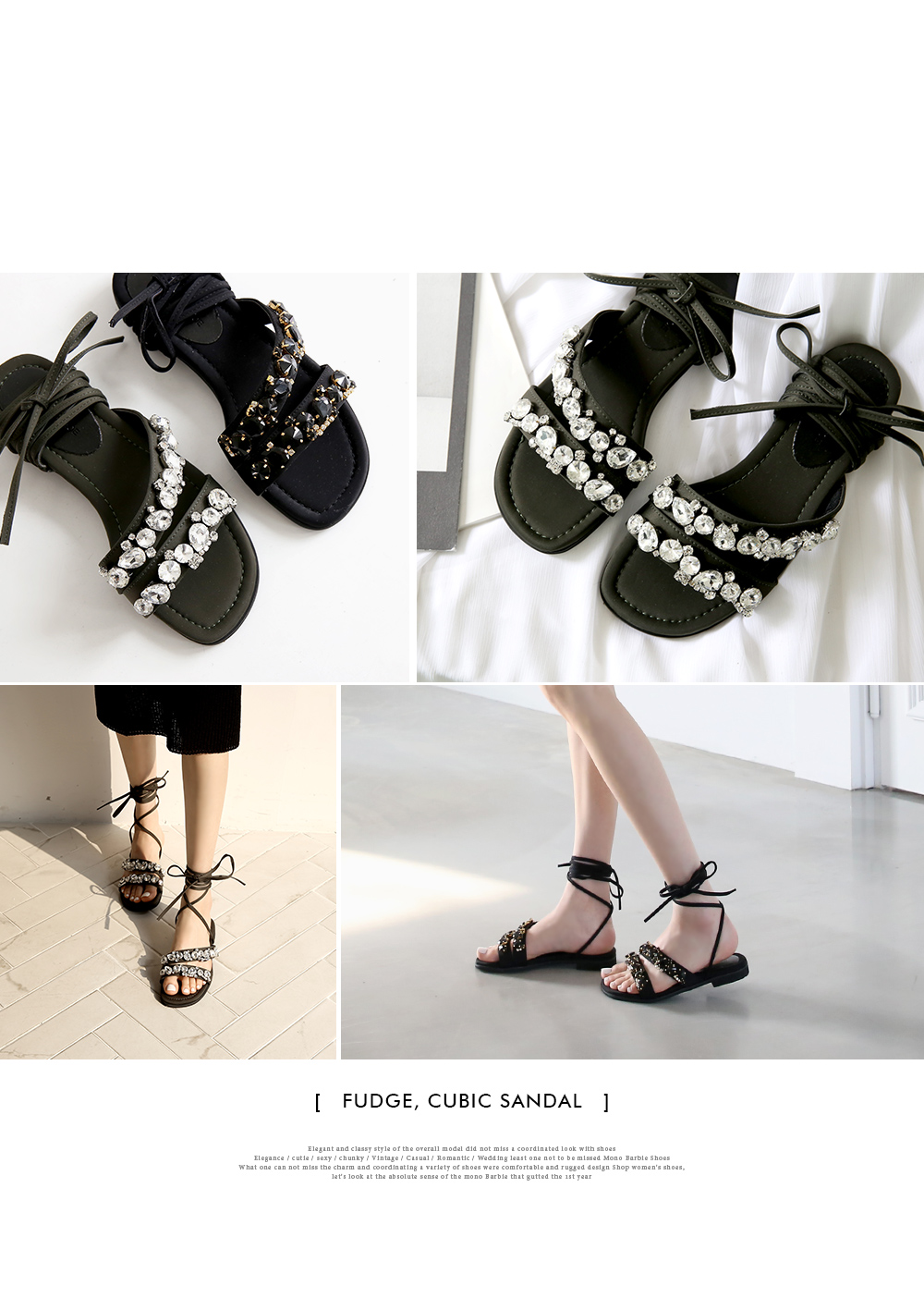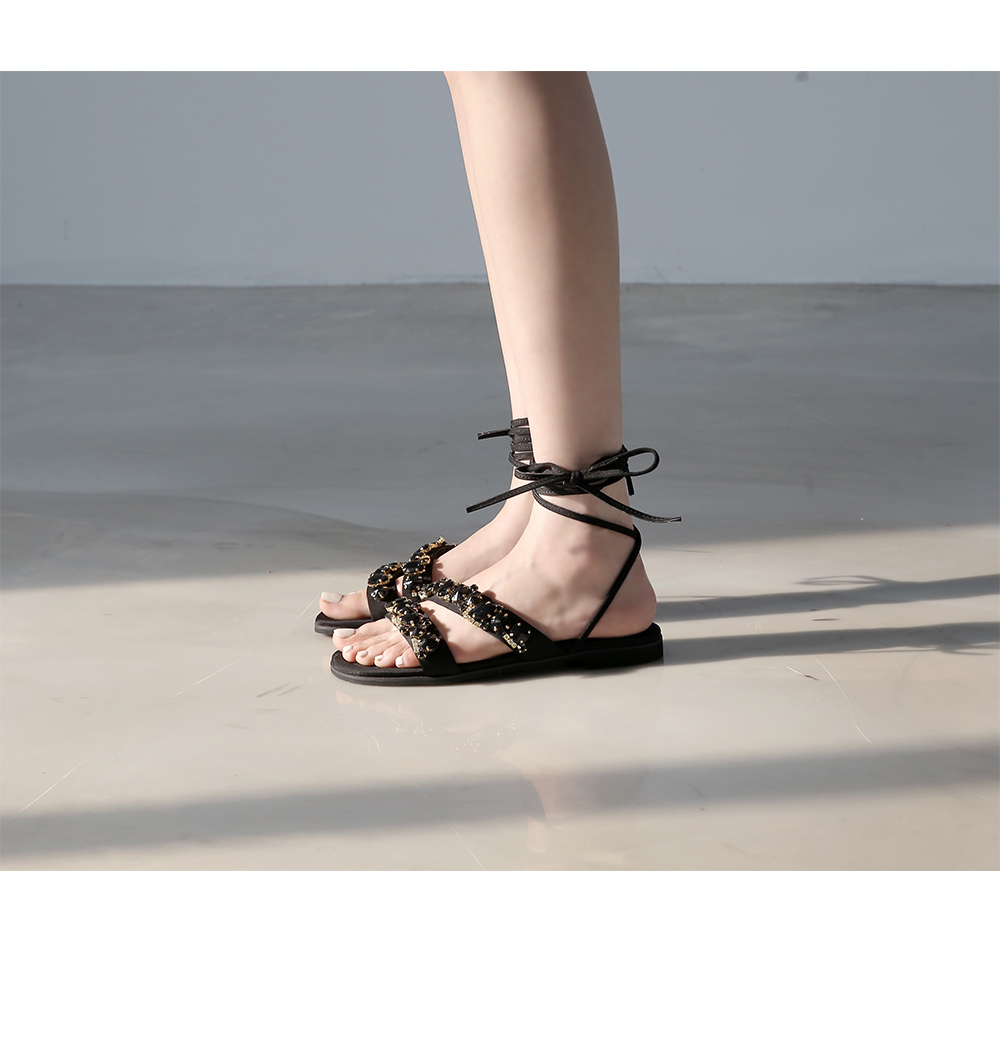 볼드한 큐빅디테일이 멋스러운 샌들입니다.