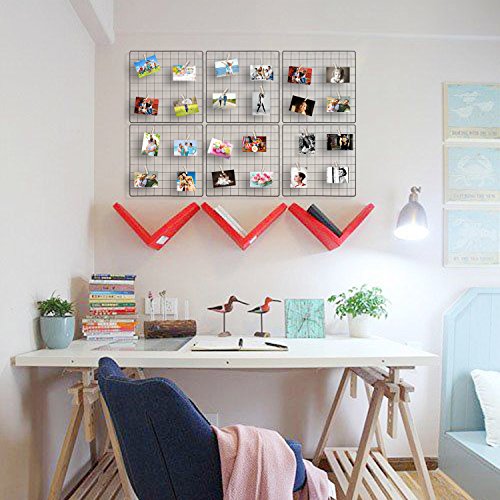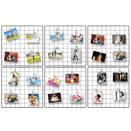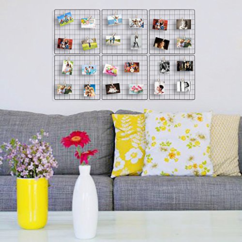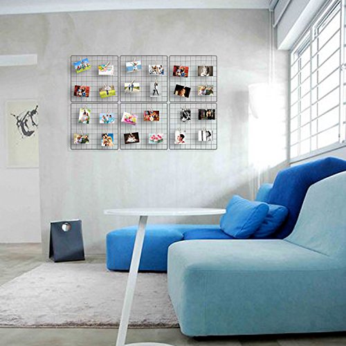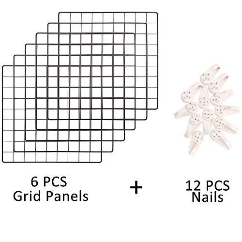 Kufox Multifunction Metal Mesh Grid Panel,Wall Decor/Photo Wall/Wall Display & Organizer,6 Pcs Grid Panels+12 Pcs Nails Included,Size:13.7" x 13.7"/35X35CM,Black