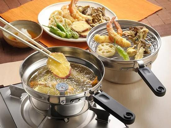 | オイルポットがそのまま天ぷら鍋に、油きり、油こしに!手軽に揚げて、片付け簡単!直火以外にも200V電磁調理器OK!鍋とポットを重ねてコンパクトに収納でき場所を取りません! |