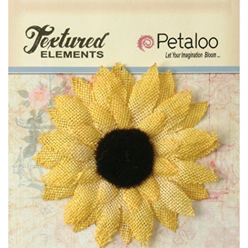 Petaloo Textured Elements Burlap Sunflower, 3.5", Yellow