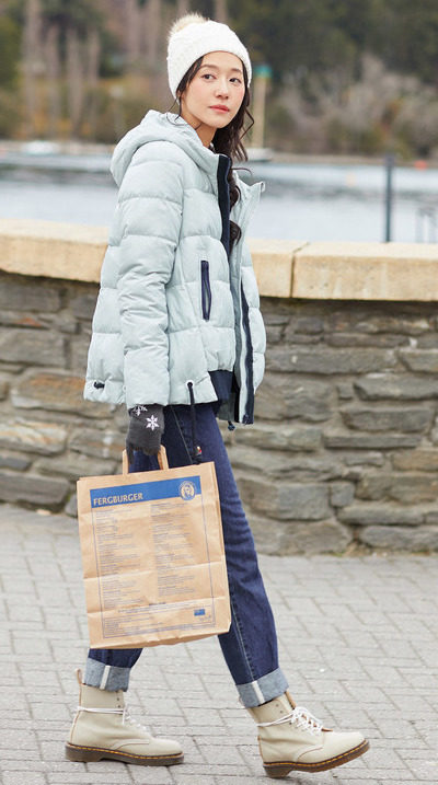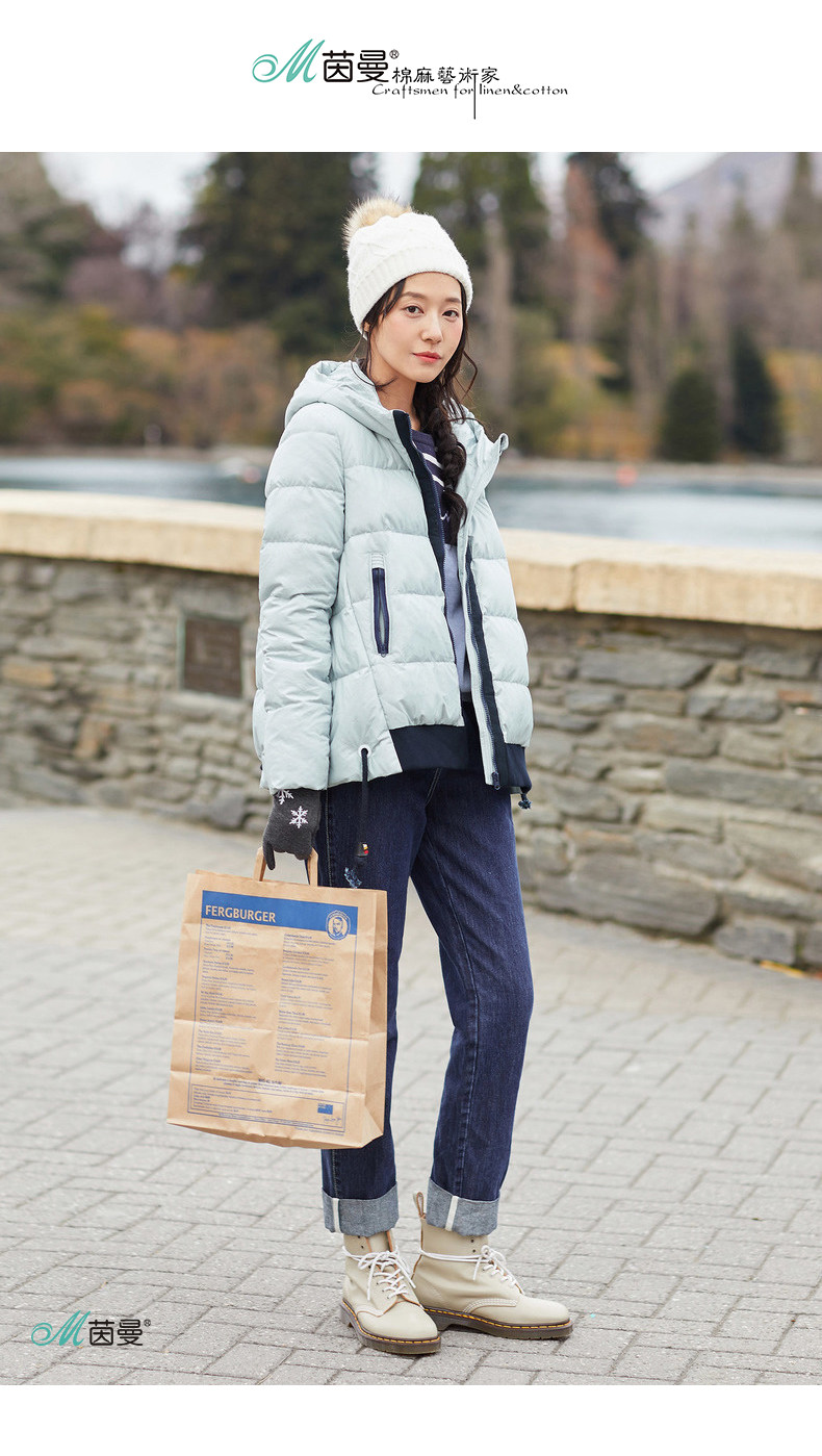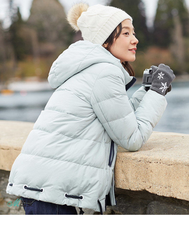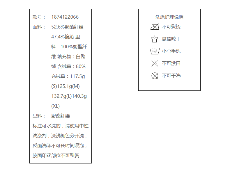 52.6%聚酯纤维 47.4%锦纶 里料:100%聚酯纤维 填充物:白鸭绒 含绒量:80% 充绒量:117.5g(S)125.1g(M)132.7g(L)140.3g(XL)