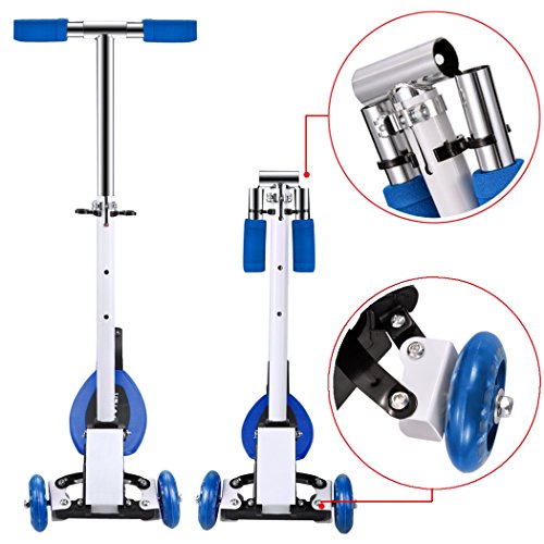 -. Brand : Cheesea -. Feature : ★STABLE 3 WHEEL DESIGN---3-wheel design gives the kick scooter both added stability and safety. And 3-wheel design make riding fun and easy for kids of any skill level / ★ADJUSTABLE HEIGHT---Adjustable handlebar range 54-77cm/21-30', which accommodates your little ones as they grow. Very suit for kids age 3-12, up to 110 lbs. / ★SAFETY--- Anti-Skid Sandpaper design and high quality bearings reduce vibration make a smoother ride. Lean-to-steer mechanism which easy and smooth turn right or left for kid and the hand grip very soft to protect kid's hand wouldn't hurt / ★FOLDABLE DESIGN---Folding design make the three wheeled scooter easy to carry and convenient to store when not in use -. IsAutographed : 0 -. IsMemorabilia : 0 -. Label : Cheesea -. Manufacturer : Cheesea -. MPN : cheesea -. PartNumber : cheesea -. ProductGroup : Sports -. ProductTypeName : OUTDOOR_RECREATION_PRODUCT -. Publisher : Cheesea -. Studio : Cheesea -. Title : Mini Adjustable Foldable Kick Scooter, Anti-skid 3 Wheel Kickboard Scooter Tretroller for Boys Girls Children Kids Blue (3-12 Years)