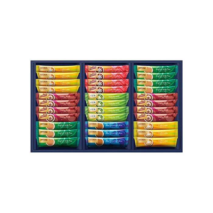 원재료:아스토리아(블루 마운틴 블렌드11.3g×3 심볶 카페《라테》9.1g×7)고, 츠지리 진하 녹차 밀크11.5g×4,밴 호 텐(코코아 리치18g×8카페 모카15g×4)고, 트와닝 잉글리쉬 밀크 티14.9g×7