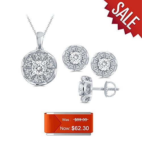 A stunning gift for her, this set is a match of pendant and earring. Elegantly crafted in 925 sterling silver, the pendant and earring features 1.00 cttw Round White Simulated Diamond. The Pendant comes along with a cable chain and earring is backed by screw and post for its safety.Feature