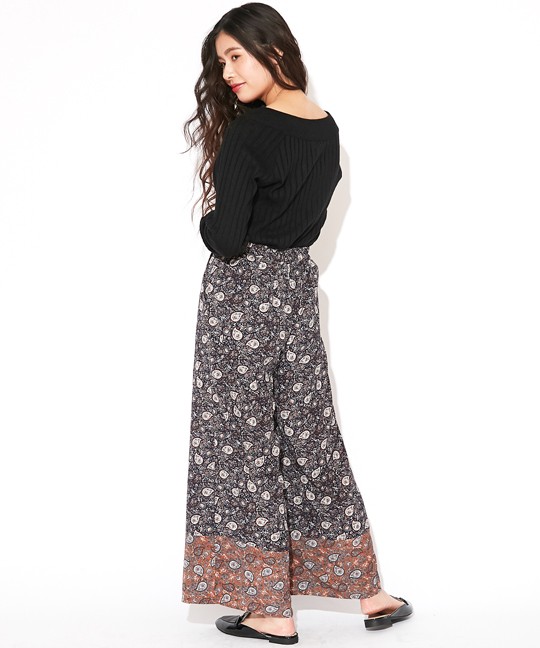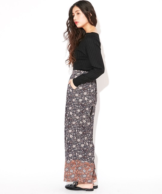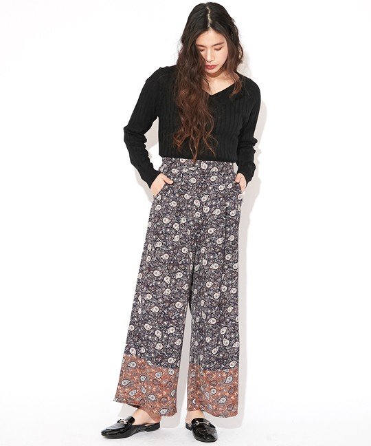 裾を18CM巾配色で切り替えたワイドパンツ♪