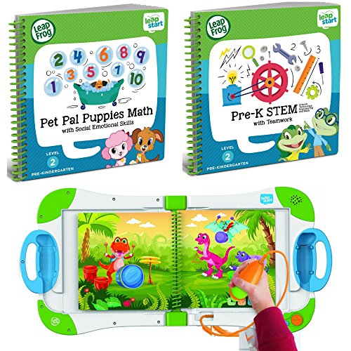 -. Binding : Toy -. Brand : LeapFrog -. EAN : 0633562897032 -. Feature : LeapStart Interactive Learning System Preschool and Pre-Kindergarten for Kids Ages 2-4, Works with all LeapStart Books; / LeapStart Pre-Kindergarten Activity Book: Pre-K STEM (Science, Technology, Engineering and Math) and Teamwork; Over 40 replayable activities Kids explore 16 key pre-kindergarten STEM and teamwork skills / LeapFrog LeapStart Pre-Kindergarten Activity Book: Pet Pal Puppies Math and Social Emotional Skills;Over 40 replayable activities Kids explore 16 key math and social emotional skills -. IsAdultProduct : 0 -. Label : Leapfrog -. Manufacturer : Leapfrog -. ProductGroup : Toy -. ProductTypeName : TOYS_AND_GAMES -. Publisher : Leapfrog -. Studio : Leapfrog -. Title : LeapFrog LeapStart Preschool and Pre-Kindergarten Interactive Learning System For Kids Ages 2-4 With 2 Junior Activity Books: STEM And Math and Social Emotional Skills Fun Activity Bundle Set -. UPC : 633562897032