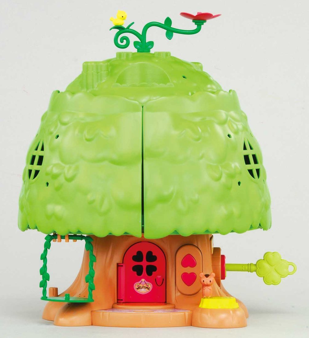 1) When turning the key to the left, the tree house opens with a nice sound.