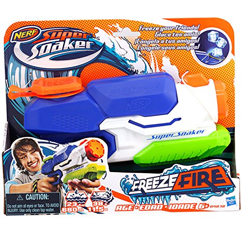 Beat the heat with the freezing blasts of the Freezefire soaker! This powerful soaker lets you freeze your friends with ice-cold blasts of water. The Freezefire soaker's tank has a large 23-fluid-ounce capacity and a large enough opening so you can add ice cubes for a super-chilled soak. Freeze your friends from up to 38 feet away and put the competition on ice with the Freezefire soaker! Nerf and all related characters are trademarks of Hasbro.Feature