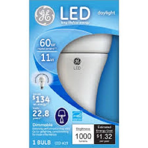 GE Lighting 42473 LED 11-watt (60-watt replacement), 1000-Lumen A19 Light Bulb with Medium Base, Daylight, 1-Pack