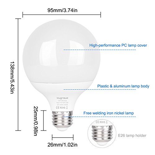 - ■ Excellent Preformance:The Globe Light Bulbs with 1000lm,3000K warm white lighting.One 12W bulb can replace the traditional 100W bulb.Save up 80% on your electricity bill.80+ high color-rendering index,see all color the way they are supposed to seen!