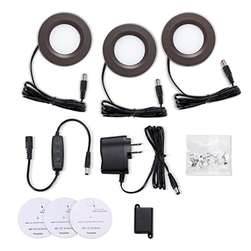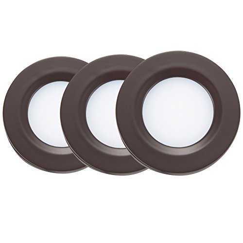 GetInLight Dimmable LED Puck Lights Kit, Recessed or Surface Mount Design, Soft White 3000K, 2W (6W Total, 30W Equivalent), Bronze Finished, ETL Listed, (Pack of 3), IN-0102-3-BZ