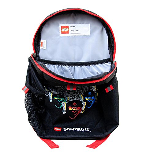 -. Feature : Adjustable padded shoulder straps / Bright Colorful Design on Front featuring Ninjago figure / Approx. 15.5 x 11" x 4.5" / One Large Main Compartment / One mesh pocket