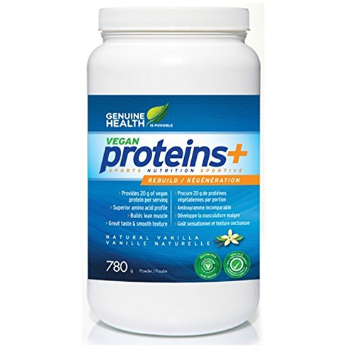 -. Binding : Health and Beauty -. Brand : Genuine Health -. EAN : 0624777004407 -. Feature : Provides a satiating, long lasting protein / Helps build lean muscle and boost metabolism / Supports the immune system / Helps balance blood sugar levels / Has the highest level of Branched Chain Amino Acids (BCAAs) to support muscle synthesis and counter fatigue -. IsAdultProduct : 0 -. Label : Genuine Health -. LegalDisclaimer : This statement has not been evaluated by the FDA. This product is not intended to diagnose, treat, cure, or prevent any disease. -. Manufacturer : Genuine Health -. MPN : GH00440 -. PackageQuantity : 1 -. PartNumber : GH00440 -. ProductGroup : Health and Beauty -. ProductTypeName : HEALTH_PERSONAL_CARE -. Publisher : Genuine Health -. Studio : Genuine Health -. Title : Vegan proteins+ Vanilla (780g) protein+ Brand: Genuine Health -. UPC : 885276173036