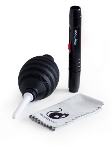 Meymoon 3-teiliges Reinigungsset fur Spiegelreflex Kameras, Objektive, Handys, Smartphones, Camcorder, etc., bestehend aus einem Blasebalg, einem Reinigungsstift und einem Mikrofasertuch