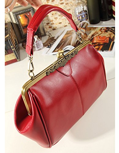 Product Description 2017 New Retro Vintage Kiss Lock Imitation Leather Purse Handbag Totes Bag for Women,girls; Add some chic to your style with this beautiful and practical vintage pu leather tote handbag; Has one rolled tote handle and a removable cross body strap for easy convertion to a single shoulder bag. Durable material and workmanship to withstand daily wear tear. Occasion:Dating,Working Place,Shopping,Traveling,Business,Meeting etc; Kiss lock closure for security and with a cross body straps for easy carrying. Please allow little color difference due to different camera or light environment. Little leather smell is nomal.Putting it outside for few days,the smell will disappear. 0