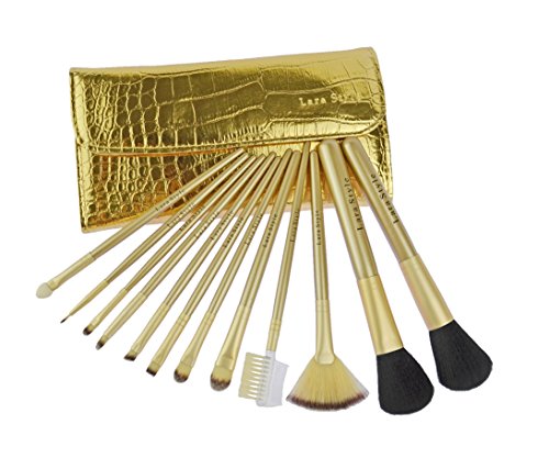 -. Title : Lara Style 12pcs Gloden makeup Brush Set, include Face Brush, eye Brush, cheek Brush, brow Brush, lip Brush, with Leather Cae Bag