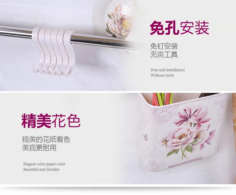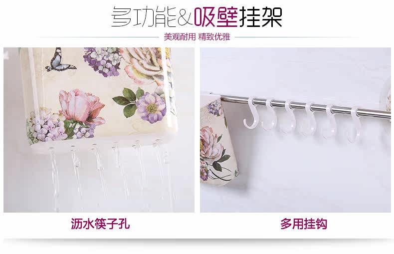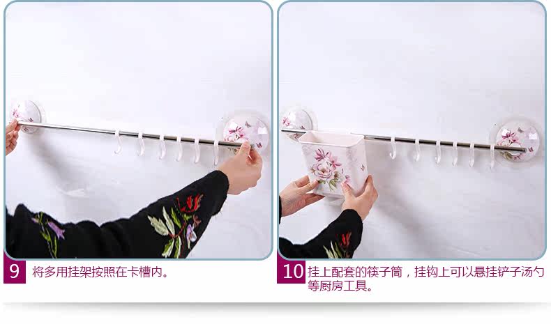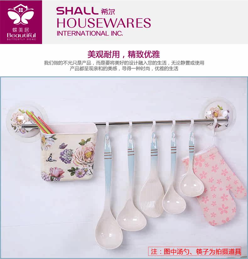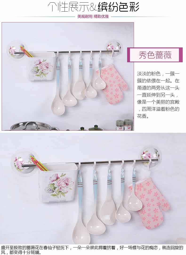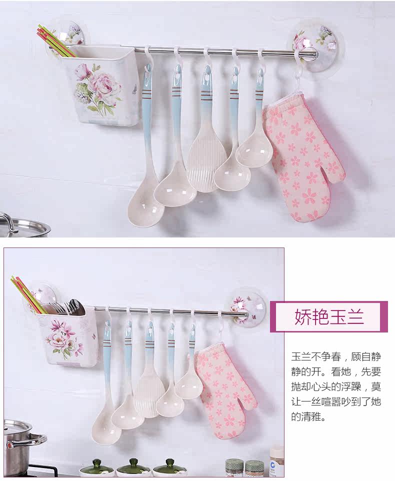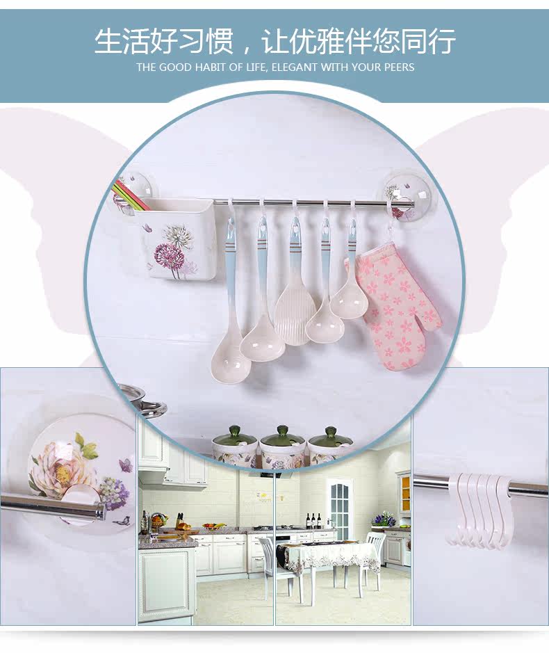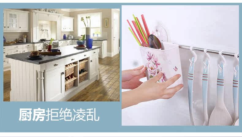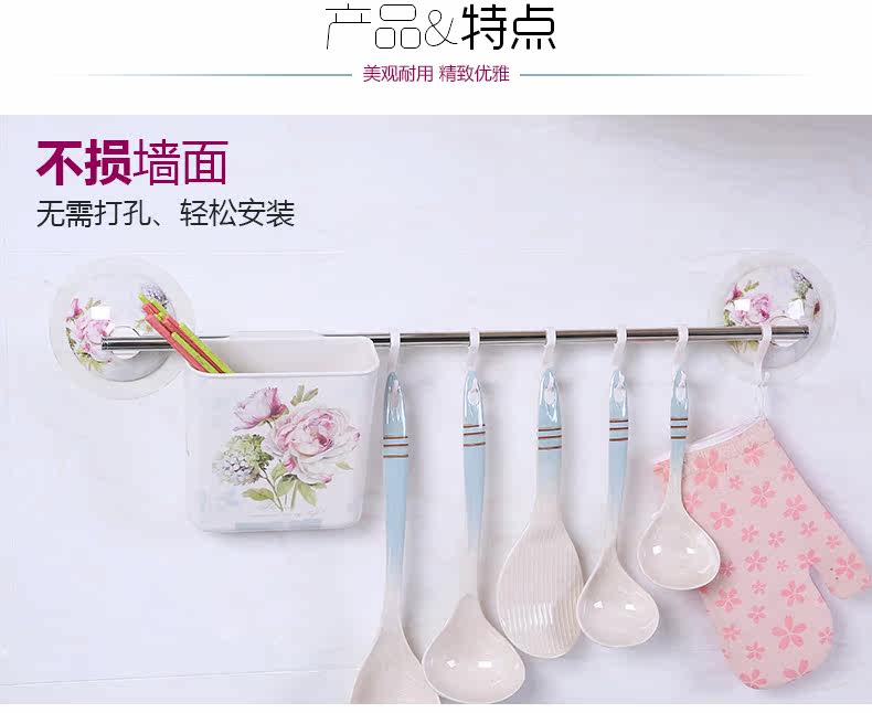 吸壁式多功能厨房挂架挂杆置物架 厨卫壁挂挂钩筷子筒
