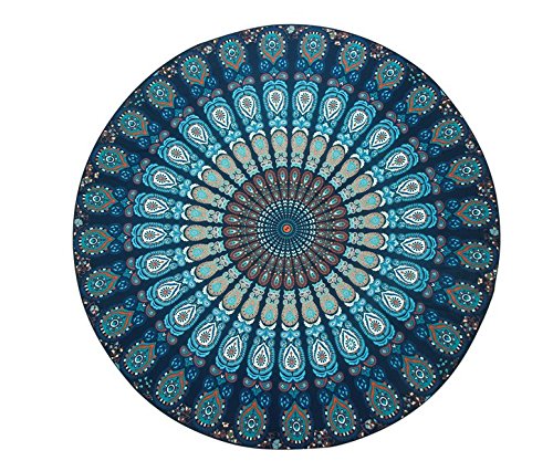 Resulzon Indian Mandala Hawaii Sunproof Round Beach Throw Tapestry Hippy Boho Gypsy Tablecloth Beach Shawl 60 Inches - Navy Blue