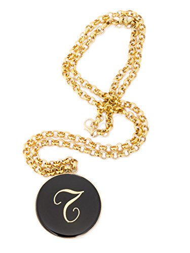 -. Feature : Vergoldete Halskette und Medaillon mit Initiale, Emaille, Schwarz / Handgemacht in Florenz, original Cecchi, Umfang: 5 cm / Vergoldet