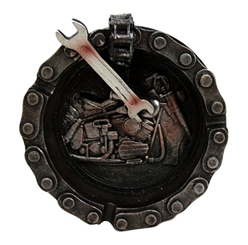 -. Brand : Atlantic -. Color : Dark Silver Metallic -. EAN : 0648609565089 -. Feature : This ashtray is made of polyresin, hand painted and polished individually. / It measures 2" Tall, 5.25" long and 5 1/8" wide approximately. / This is a motorhead ashtray that looks awesome to show off at any party, car dashboard (if you mount it with double-sided tape etc) and tables. Best of all we bring this exotic ashtray to you at the best P.R.Ice online and anywhere else! -. IsAutographed : 0 -. IsMemorabilia : 0 -. Label : Atlantic Collectibles -. Manufacturer : Atlantic Collectibles -. Model : No Model -. MPN : AC758 -. PackageQuantity : 16 -. PartNumber : AC758 -. ProductGroup : Automotive Parts and Accessories -. ProductTypeName : AUTO_ACCESSORY -. Publisher : Atlantic Collectibles -. Studio : Atlantic Collectibles -. Title : Atlantic Collectibles Mechanic Biker Motorcycle Round Belt Chain With Wrench Cigaretter Ashtray Resin Figurine -. UPC : 648609565089