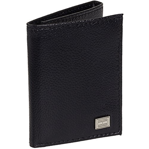 A sharp dressed man needs a sharply designed wallet. Carry your cash in style with this Pebbled Leather Trifold Wallet w/ Metal Embellishment by Tommy Hilfiger. Constructed of gorgeously textured genuine leather, this trifold opens to reveal a spacious interior sure to keep you properly organized. 6 card slots, 2 slip pockets, a thumb-glide ID holder and dual, fully lined bill compartment give you plenty of options when storing your everyday necessities. The exterior features eye-catching metal detailing, featuring the Hilfiger logo. Presented in a gift box. Measures 4.15" x 3.5" x .1" (when closed).Feature