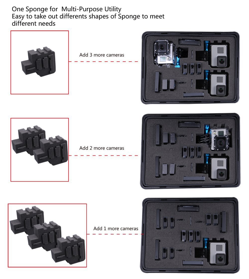 This case of two layer structure, top layer excellent superior ideal cut foam interior not only provides more space for GoPro hero camera and many accessories, it is also well organized and protected