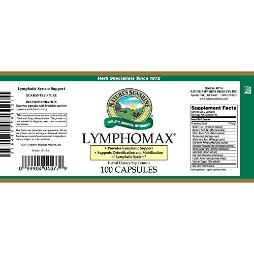 -. Binding : Health and Beauty -. Brand : Nature's Sunshine -. Feature : From the world leader in herbs and health supplements -. Label : Nature's Sunshine -. Manufacturer : Nature's Sunshine -. MPN : na -. PackageQuantity : 1 -. PartNumber : na -. ProductGroup : Health and Beauty -. ProductTypeName : HEALTH_PERSONAL_CARE -. Publisher : Nature's Sunshine -. Studio : Nature's Sunshine -. Title : Naturessunshine Lymphomax Immune System Support Herbal Supplement 100 Capsules (Pack of 2)