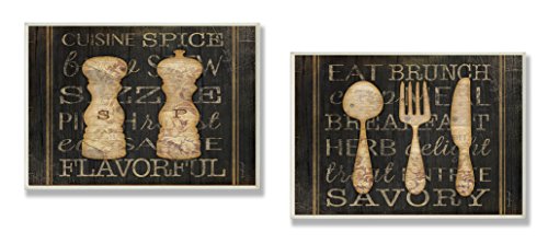 Stupell Home Décor Salt Pepper And Utensils Typography Duo Kitchen Wall Plaque, 10 x 0.5 x 15, Proudly Made in USA