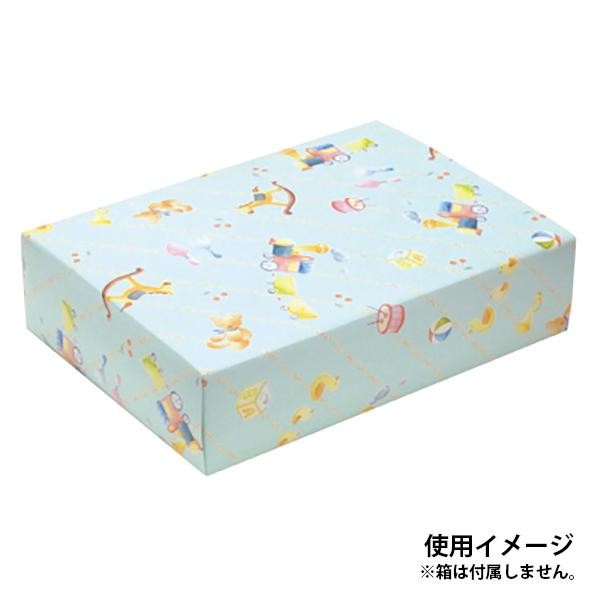 可愛い子供向け柄の包装紙です。さわやかな水色は男の子へのギフトにピッタリ。ラッピングしやすい柄で、出産祝いや内祝いなどに最適です。