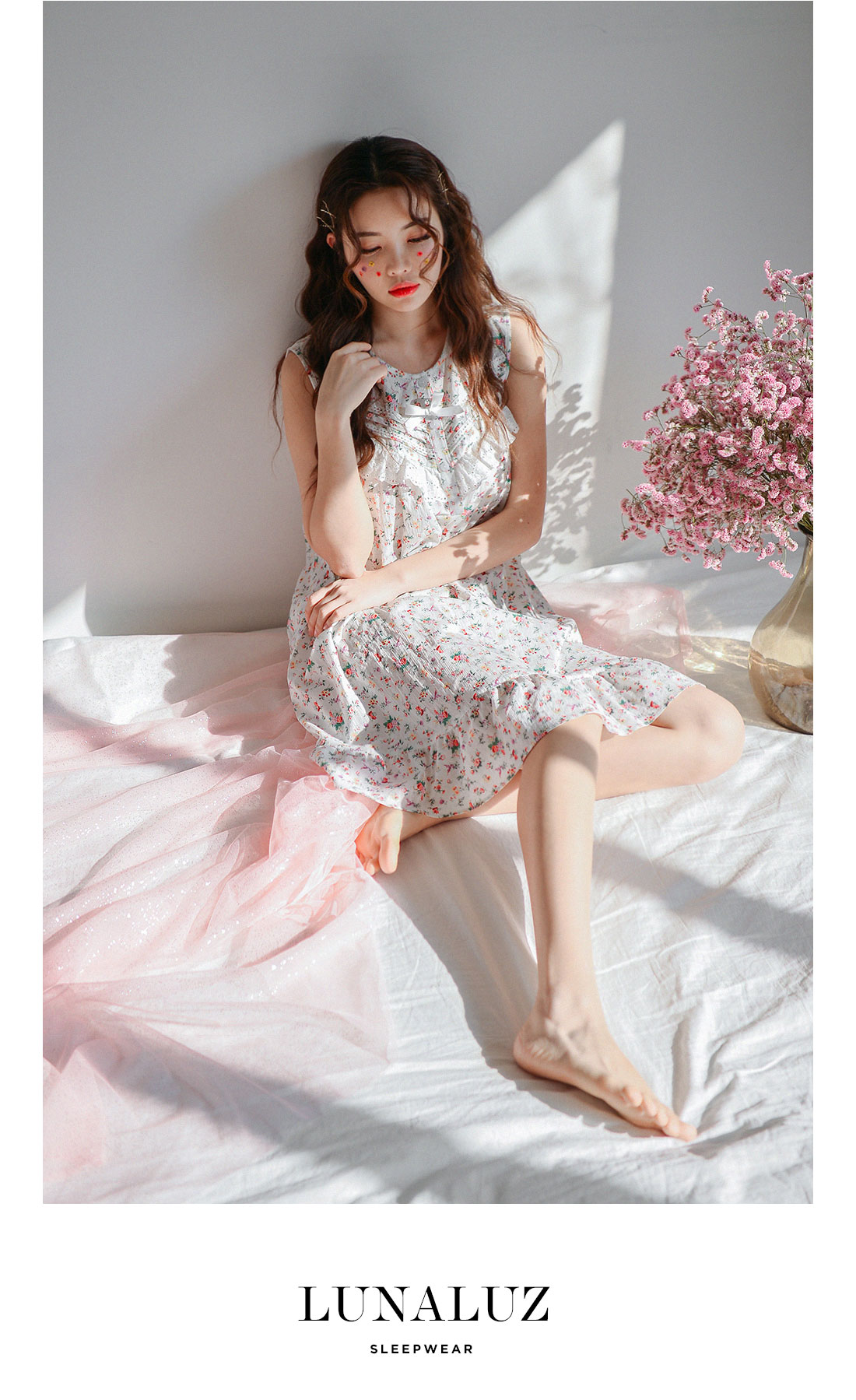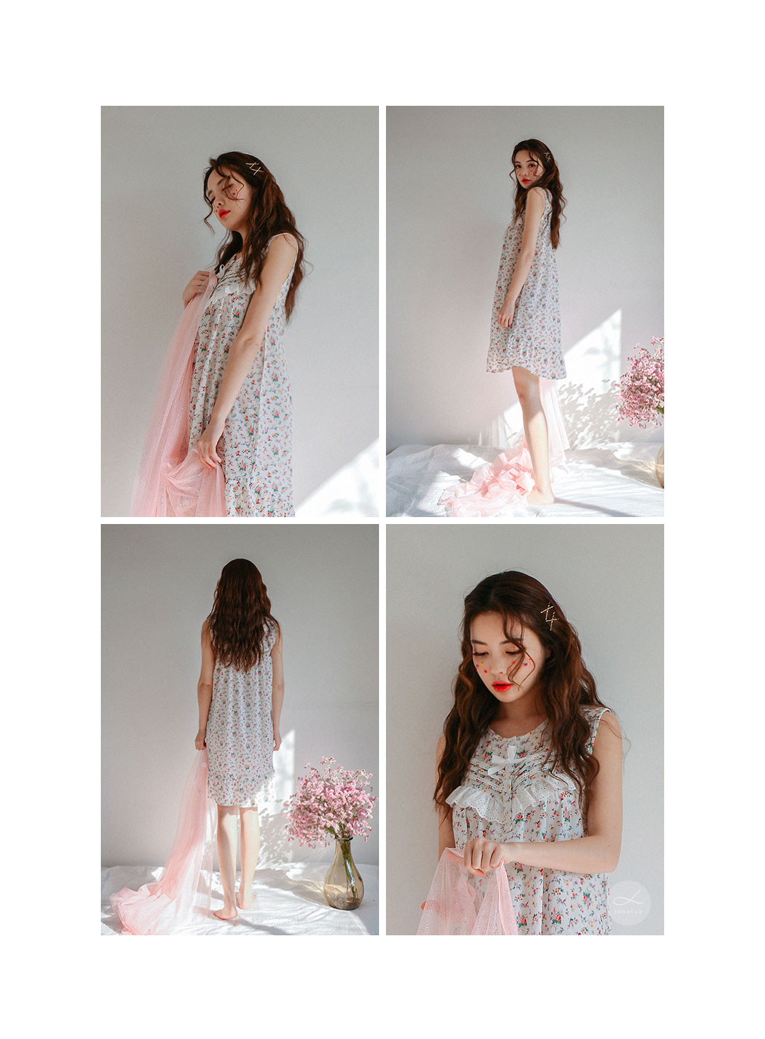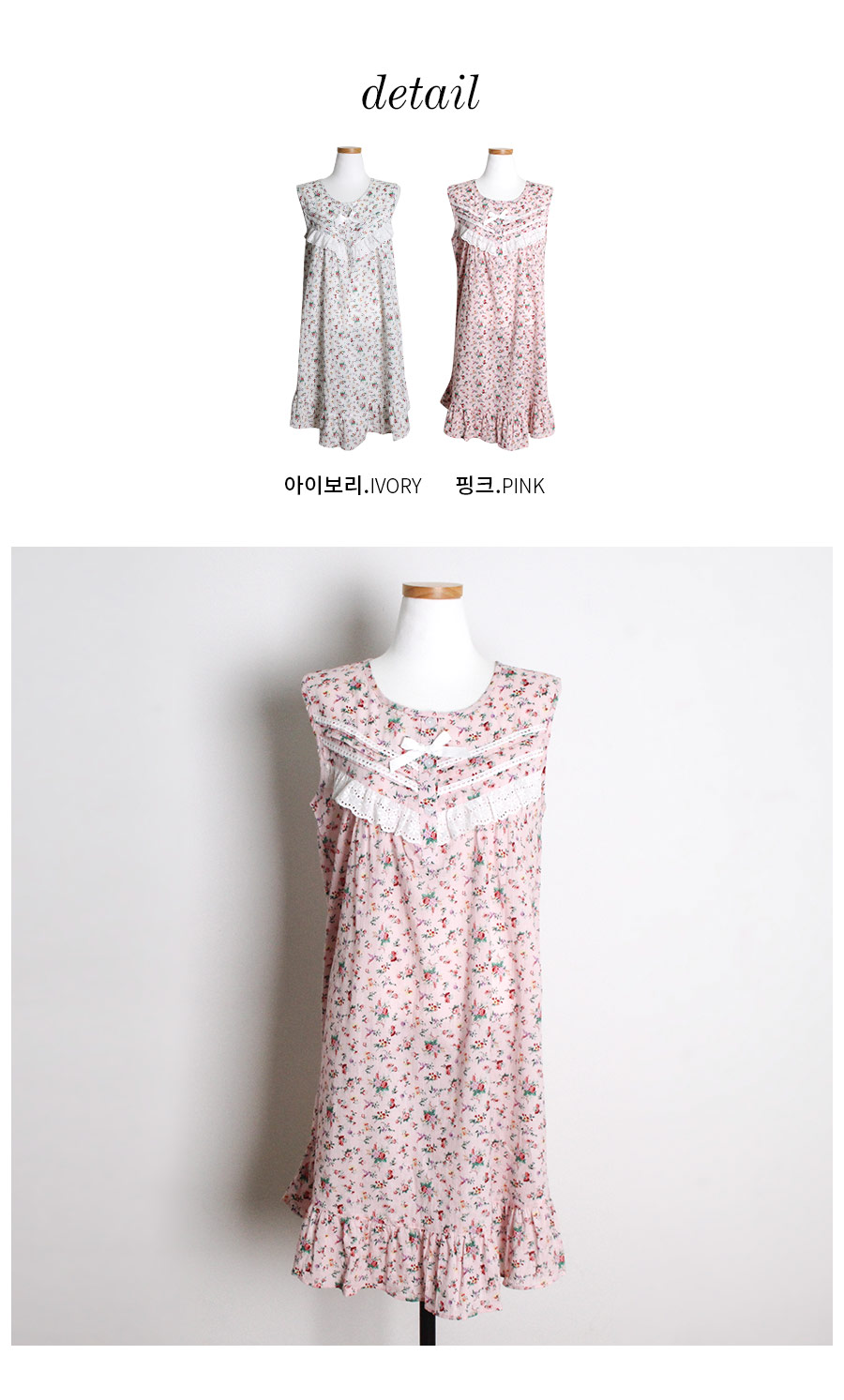 러블리한 플라워 프린팅과 시원한 요루면 소재의 슬립웨어~! 잔잔하게 링클이 잡힌 요루면 소재와 봄, 여름에 산뜻하게 입기 좋은 플라워 프린팅으로 여성스럽게 착용하기 좋은 슬립웨어에요. 베이스 컬러와 플라워 프린팅 하나하나 bt를 낸 자체제작 원단으로 소장가치가 높습니다. 얇고, 부드러운 원단으로 여름이 입기 좋습니다. 화사한 베이스컬러와 플라워 프린팅으로 분위기 UP하기 좋을 스타일이랍니다. 러블리한 딸기우유 컬러와 깔끔한 아이보리 컬러 2가지로 제작했습니다.