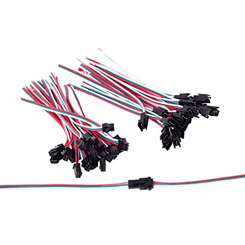 BTF-LIGHTING 20 Pairs JST SM 3 Pin Connectors For WS2812B WS2811 WS2812 SK6812 LED Strip Female Male 15cm 20awg wire
