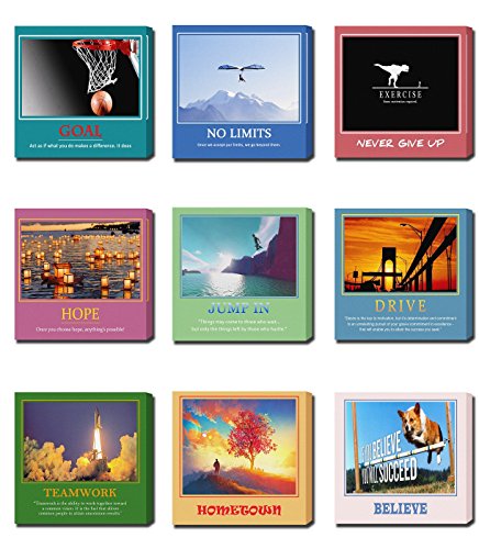 -. Title : 9Pcs x Motivational Quotes Motto Inspirational Success Teamwork Canvas Stretched Wood Framed Combine Modern Abstract Art For Home Room Office Wall P.R.Int Decor 8x8" (20x20cm)