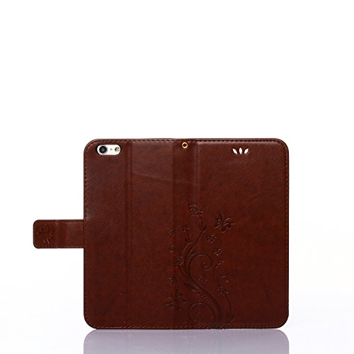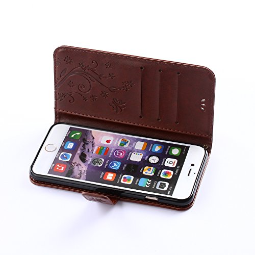 Urvoix iPhone 6 / iPhone 6S Case, Card Holder Stand Smooth Hand Feel PU Leather Wallet Case - Embossed Flower Butterfly Flip Cover for 4.7" Version iPhone6/6S (NOT for 6Plus)
