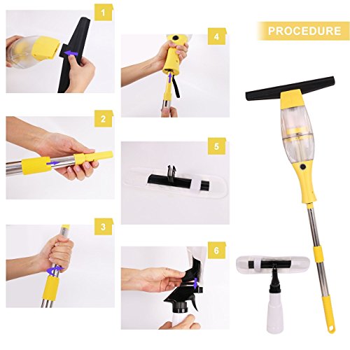 Package --- Included a sprayer, a cleaning cloth and an extension pole enables streak/drop free and effort-saving cleaning.