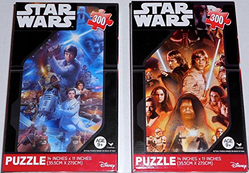 -. Binding : Toy -. Brand : Disney -. EAN : 0639277168856 -. Feature : 2 - 300 piece Star Wars long box Puzzles / 1 long box puzzle from Star wars - Episode 4-6 (BLUE / SEE PICTURE 2) / 1 long box puzzle from Star wars - Episode 1-6 (Brown / SEE PICTURE 3) / Does not include the Empire Strikes Back Puzzle / Fun for the whole Family -. IsAdultProduct : 0 -. Label : Disney -. LegalDisclaimer : In the unlikely event that a return is requested, all returns must include all original items undamaged, unused in re-saleable condition, all original packaging included. Buyer is responsible for postage and insurance costs incurred sending products back. We will refund full sale amount minus our postage costs and restocking fees of 15% -. Manufacturer : Disney -. PackageQuantity : 2 -. ProductGroup : Toy -. ProductTypeName : TOYS_AND_GAMES -. Publisher : Disney -. Studio : Disney -. Title : Star Wars Jigsaw Puzzle 300 piece (set of 2) -. UPC : 639277168856