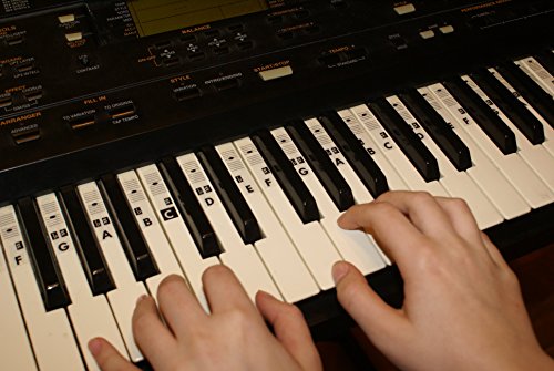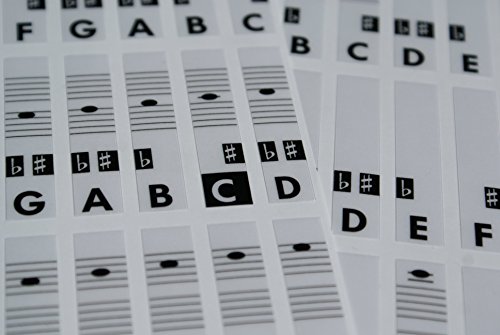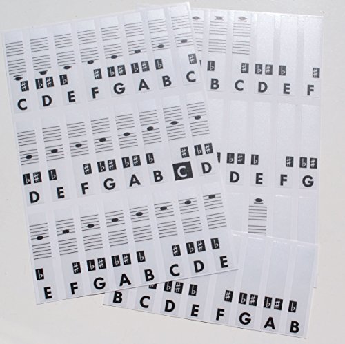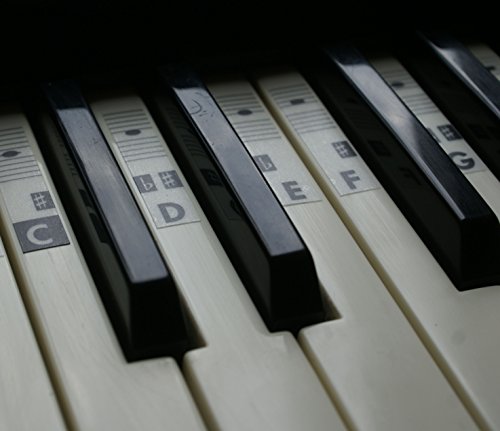 -. Feature : The stickers are on matt transparent fully laminated removable vinyl / Designed specifically for 37, 44, 49, 54, 61,76, 88 keyboard, piano. / Middle C highlighted / Easy to install. Can be cleaned. Easy to remove. Does not leave adhesive tape. / Notation: C-D-E-F-G-A-B
