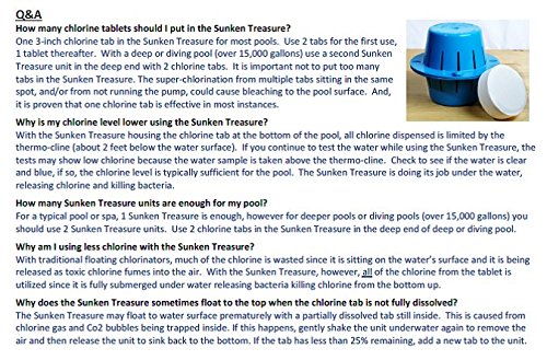 Sinking Chlorine Dispenser [Sunken Treasure] - Sinks, Sanitizes Pool Water, Then Floats for Refilling - Uses LESS Chlorine (Light Blue)
