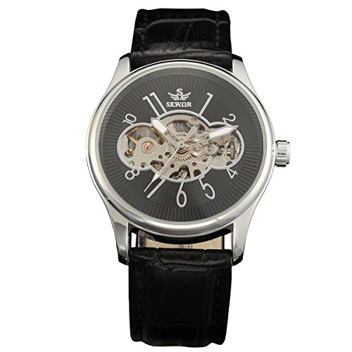 -. Title : Sewor Unisex Skeleton Hand Wind Up Mechanical Wrist Watch Black