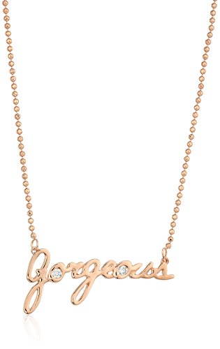 rose gold tone delicate necklace chain and "gorgeous" pendant with cz stone accent