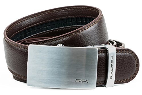 With a sleek color and simple look, the Zinc buckle will make even your khakis jealous. Railtek Belts are a unique kind of belt with no holes and a perfect fit every time! Railtek Belts are a high quality fashionable belt that will change how you look at belts. Our ratchet belts with no holes are fine tuned and custom designed to make you stand out from the crowd. Why Railtek? High Quality Belts We strive to create the best possible product at a price everyone can afford. Railtek uses genuine leather and durable long lasting buckles to make your belt last. No more buying a new belt every 6 months. Ratchet System Our ratchet system on the belts is effortless. Push the belt in, pull it, and the buckle does the work for you. No more Holes, no more damaging the belt by tugging and pulling on it to find the right hole. Our ratchet belts are made to last and function just like you want them to... effortlessly! Design Railtek Belts strives to produce fashionable leather belts that automatically fit no matter how your body feels that day. Our buckles are a perfect addition to any attire. No Holes, Perfect Fit, Everytime No more holes. No more awkward adjustments. Railtek provides automatic adjusting belts with just a slide of the ratchet on the back of each belt. This is because of the rail system embedded on the back side of the belt which interacts with the buckle to incrementally tighten or loosen your belt 1/4 of an inch at a time. No more dealing with the huge 1 inch gap between traditional belt holes! This no-hole leather belt will be the best fit your waist has had since sweat pants. Service Railtek Belts offers top notch service. NOT Satisfied, Let us know, we'll make it right! Your satisfaction is 100% our focus.Feature