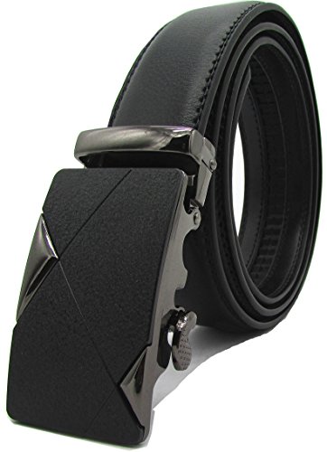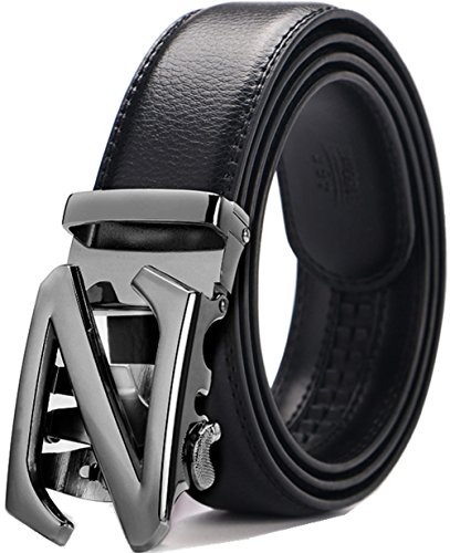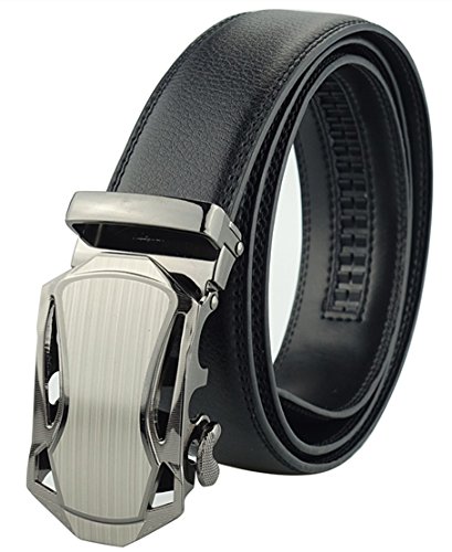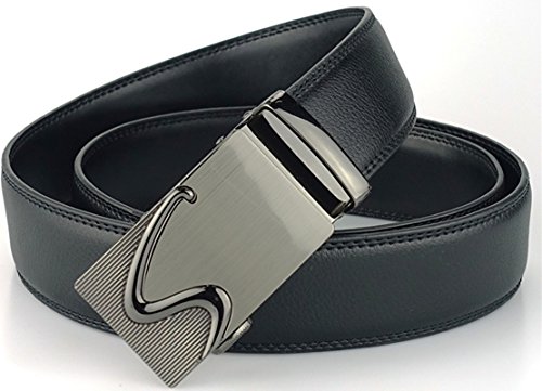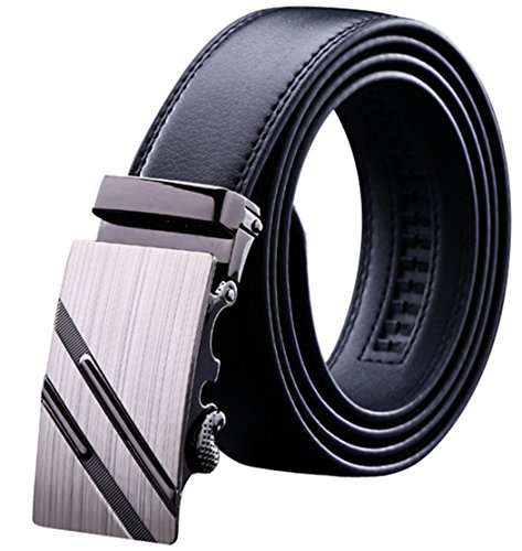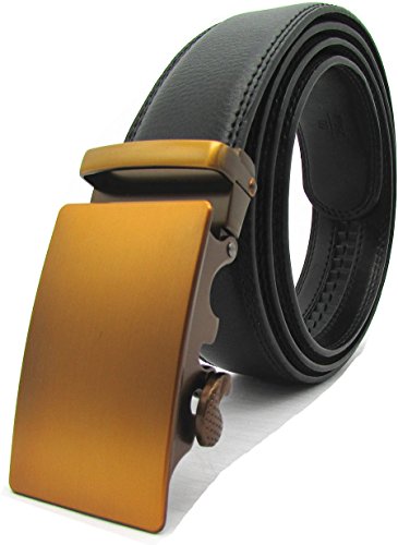 Genuine Leather Durable rubber ratchet. Auto Lock Buckle (Sliding Buckle), No holes in belt. Alloy buckle, double edge stitching. 1.38"(3.5cm)wide strap. Belt length : 44"、46"、48"、50". (110、115、120、125cm).