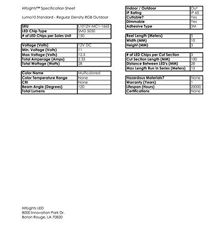 HitLights Weatherproof LED Light Strip - RGB Multicolor SMD 5050 - 150 LEDs, 16.4 Ft Roll - 12V DC - 109 Lumens / 1.7 Watts per Foot - IP-65 - Adhesive Backed for Easy Installation - Color Changing LED Tape Light