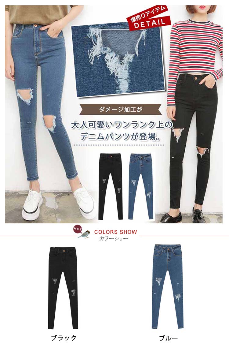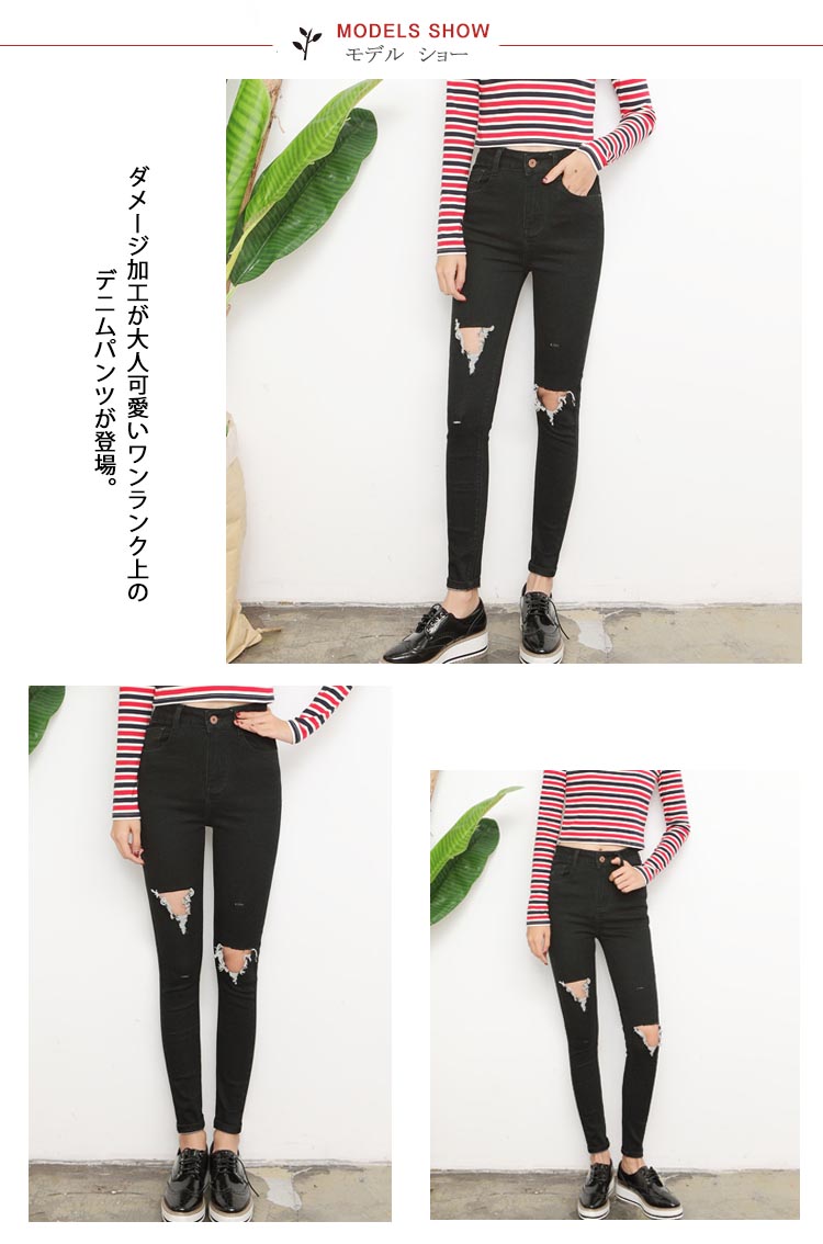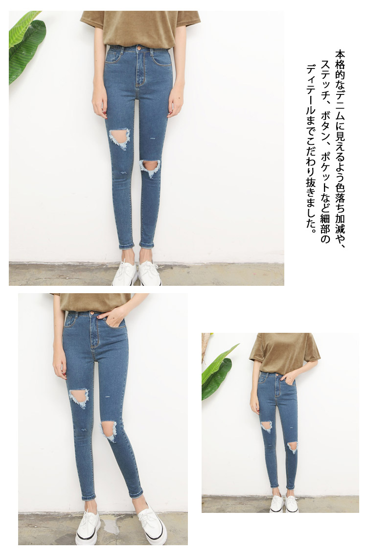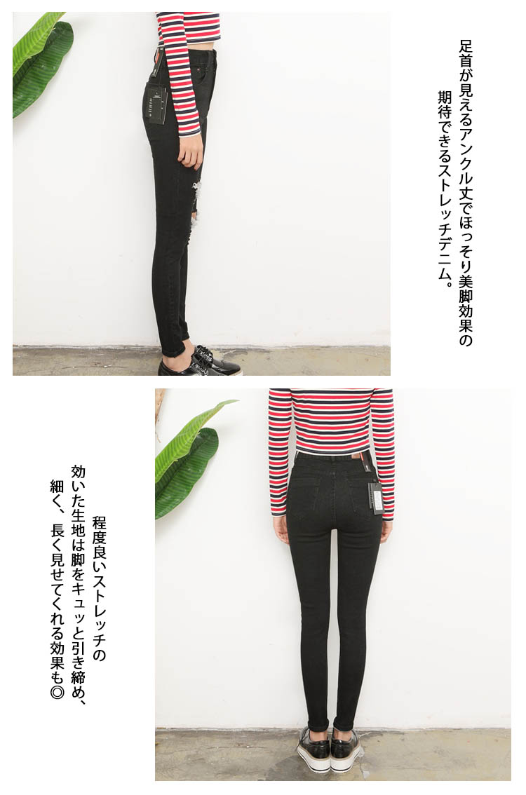 | ダメージ加工が大人可愛いワンランク上のデニムパンツが登場。足首が見えるアンクル丈でほっそり美脚効果の期待できるストレッチデニム。程度良いストレッチの効いた生地は脚をキュッと引き締め、細く、長く見せてくれる効果も◎本格的なデニムに見えるよう色落ち加減や、ステッチ、ボタン、ポケットなど細部のディテールまでこだわり抜きました。ヒールパンプスを合わせて美脚効果を最大限に引き出す着こなしがおすすめです。 | |
