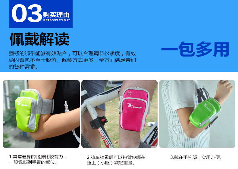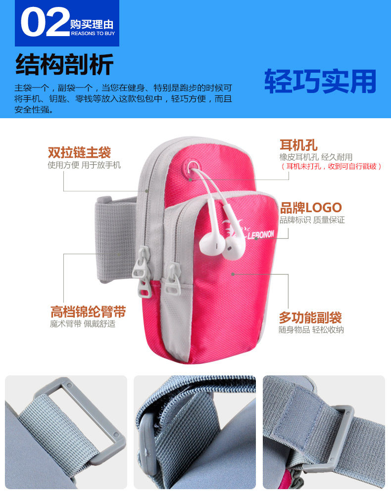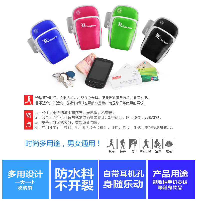 | ? | 【产品特点】 | ? | ? 升级款带耳机孔音乐臂包,可以用小身材,大容量,功能强大,使用稳定性好来形容,市面上的很多手机都可以装下,还可以装香烟,钥匙,钱包等随身物品,是您户外出行的一大贴身时尚利器,无论是自己用还是赠送家人朋友都是蛮不错的选择! ? |