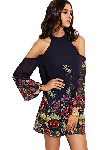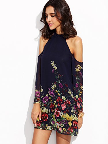 Title : Floerns Women's Cold Shoulder Halter Neck Floral Print Dress Navy S