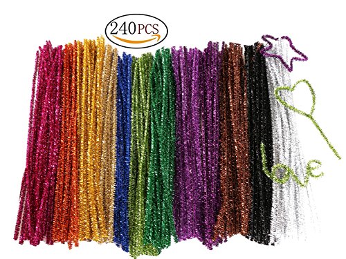 Mini Skater 240 pcs 12 Colors Colored Creative Arts Chenille Stem Metallic Class pack Tinsel Stems,6 mm x 12 Inch, DIY Craft Projects,Wedding,Home,Party,Holiday Decoration (12 glitter colors)