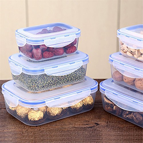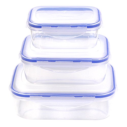 KisSealed 3Pcs Food Storage Containers with Locking Lids Nestable Rectangular